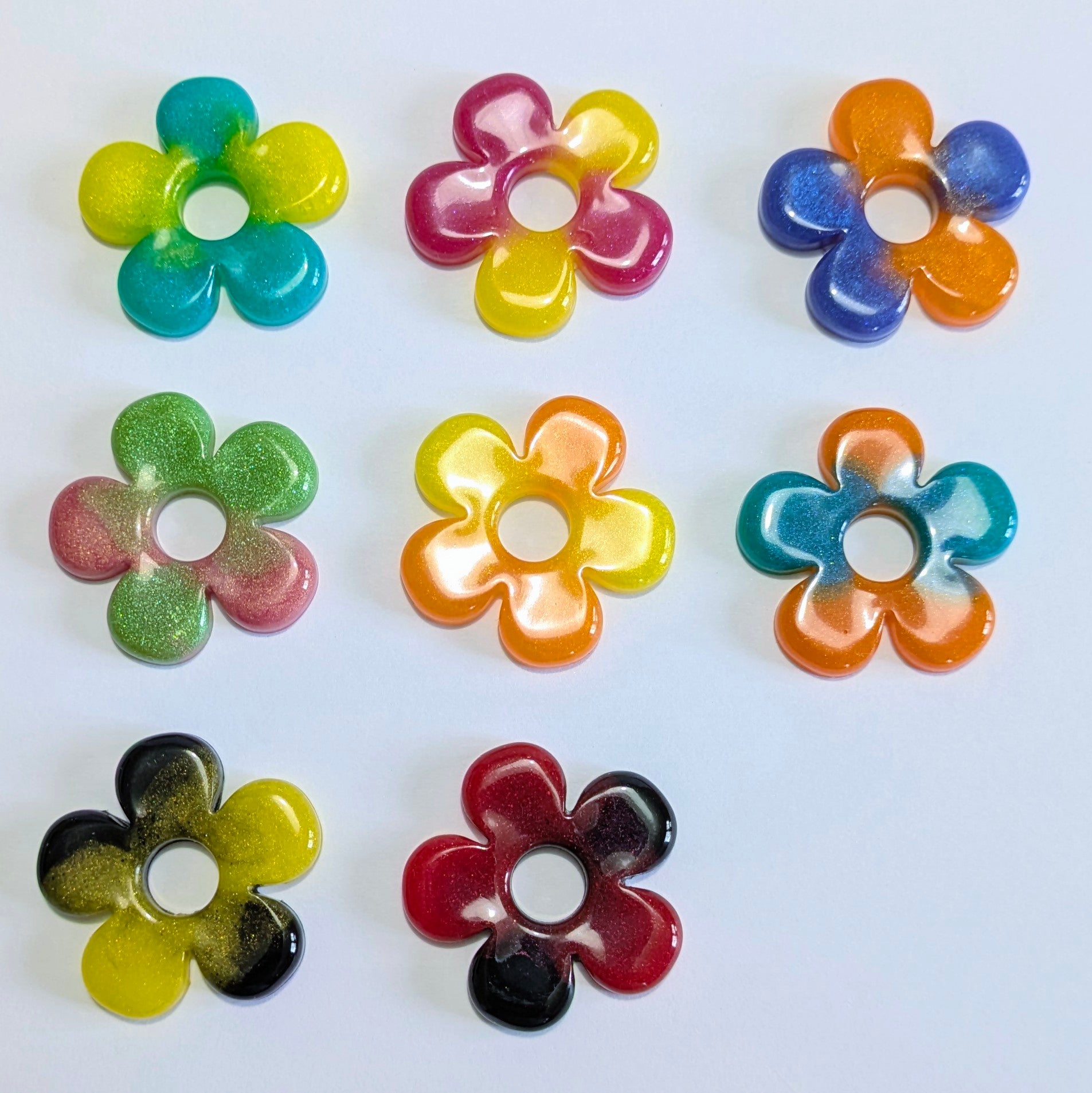 Matière : créoles dorées ou argentées en aciers inoxydables hypoallergéniques + fleurs en résine avec feuilles or