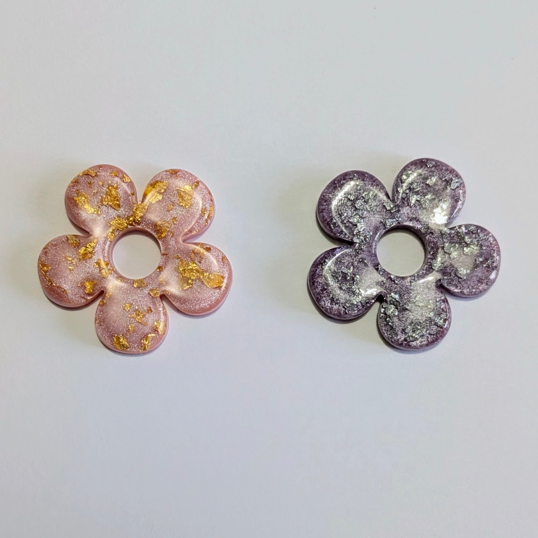 Matière : créoles dorées ou argentées en aciers inoxydables hypoallergéniques + fleurs en résine avec feuilles or